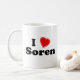 I love Soren! Is your name Soren? Do you have a wife, girlfriend, female family member or female friend who you know loves you? Or do you have a husband, boyfriend, male family member or male friend named Soren whom you love deeply? If so, this "I Love" mug is exactly the gift that you're looking for! The design features the letter "I" in black lettering with a red heart on the top and "Soren" in black lettering on the bottom.