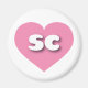 This magnet features a calm, cool pink heart containing the bold, white, rounded, lower case letters sc, a playful abbreviation for South Carolina, the palmetto state.