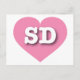 This postcard features a cool pink heart containing the bold white upper case letters SD, the official abbreviation for South Dakota, the Mount Rushmore state. The reverse side of the postcard is blank, awaiting your customized text or handwritten sentiments.