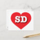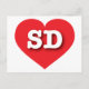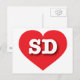 This postcard features a vibrant red heart containing the bold, white, upper case letters SD, the official abbreviation for South Dakota, the Mount Rushmore state. The reverse side of the postcard is blank, awaiting your personalized text or handwritten sentiments.