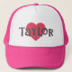 Monogram cap with personalized name TAYLOR on red with pink heart