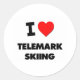 I Love Telemark Skiing Classic Round Sticker