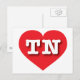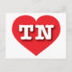 This postcard features a vibrant red heart containing the bold, white, upper case letters TN, the official abbreviation for Tennessee, the volunteer state.