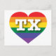 This postcard features a heart with a rainbow pride design and the bold, white, capital letters TX, the official abbreviation for the lone star state. The reverse side of the postcard is blank, awaiting your personalized text or handwritten sentiments. Show your true colors, support marriage equality, and celebrate gay pride.