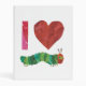 Celebrate your affection for the classic storybook with the I Love The Very Hungry Caterpillar design. This whimsical artwork features Eric Carle’s iconic caterpillar paired with the phrase "I Love The Very Hungry Caterpillar," creatively rendered in Carle’s signature hand-painted collage style. The bold text is accented by vibrant colors and playful textures, perfectly capturing the charm and nostalgia of the beloved tale.