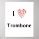I Love Trombone Red Heart of Music Notes Poster