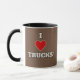 I Love Trucks (COFFEE trucks) coffee/tea mug. Featuring the original "Little Red Trucks" artwork of Rick Ellinger. The perfect gift for the coffee, latte, or cappuccino lover, or little red (or brown) truck collector, or for your own collection!