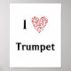 I Love Trumpet Red Heart of Music Notes Poster