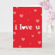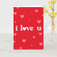 This greeting card features a deep red background filled with many small hearts in lighter pink and soft red tones. In the center, it says “i love u” in bright white letters, making the message easy to spot right away. The “o” in “love” is replaced with a white heart, which adds a sweet touch ❤️. The hearts behind the text vary in size and fade slightly in places, so the background feels layered without taking attention away from the words. The lighting looks even, and the strong contrast between the white text and red background keeps everything clear and direct. Overall, it feels romantic, warm, and simple, like a straightforward note to someone you care about 💘. It’s a great pick for a partner, a crush, or anyone you want to remind that they matter. Hope it helps you share your Valentine’s Day sentiments with someone special 😘.