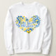 Folk art illustration heart and lettering in Ukrainian flag colors and ethnical pattern