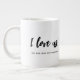 Simple and chic black and white "I love us" brush script one photo mug with personalized name.