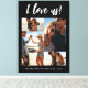 Modern black and white "I love us" brush script photo collage canvas with personalized name and year.