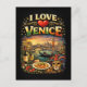 A vibrant, romantic illustration celebrating Venice’s canals, gondolas, cuisine, and iconic architecture bathed in golden sunset light.