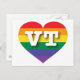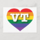 This postcard features a rainbow pride heart overlaid by the bold, white, capital letters VT, the official abbreviation for Vermont, the green mountain state. Show your true colors, support marriage equality, and celebrate gay pride.