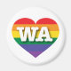 This magnet features a rainbow pride heart overlaid by the bold, white, capital letters WA, the official abbreviation for Washington, the evergreen state. Show your true colors, support marriage equality, and celebrate gay pride.