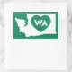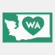 This design feature the States shapes or silhouette, the abbreviation of Washington "WA" in the center of an Heart and it's print on Rectangle Stickers.