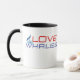 I was thrilled this came out so well. It is a very attractive mug with the colored handle and interior. Being able to personalize it was easy! It was designed for an end of the year thank you gift to the special recipient. perfect. Text lines up perfectly parallel to the top edge of the mug.