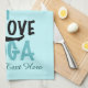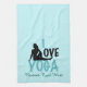 Cute yoga studio towel gift with yoga written in beautiful teal color and a woman stretched out in a pretty pose. Personalize with your yoga company or name.