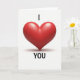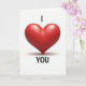 This card shows a big 3D red heart centered on a plain white background. The heart looks smooth and shiny, with soft light reflecting off it and giving it a rounded, full shape. A gentle shadow falls under the heart, helping it feel like it’s sitting on the page. Near the top of the heart, there is a black “I,” and below the heart the word “YOU” appears in black letters. The message reads as “I ❤️ YOU,” and it’s simple and easy to understand at a glance 💘. With the strong red heart against the white space, the whole design keeps your focus on love and closeness 😘.