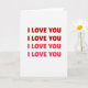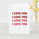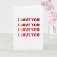 This greeting card features the words “I LOVE YOU” repeated four times, stacked neatly down the center of a white background. The message is easy to read, using rounded letters that feel friendly and inviting. The top two lines appear in a deep red that feels bold and confident, drawing attention right away ❤️. The third line shifts into a softer rose shade, while the final line fades into a light pink that feels gentle and warm 💕. With the same words repeated in the same spot, the changing colors create a quiet sense of growing affection from top to bottom. There are no extra images or decorations, so the focus stays on the message itself. It’s a thoughtful card for a partner, close friend, or anyone you want to remind how much they mean to you, perfect for Valentine’s Day or any moment of love.