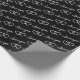 This wrapping paper features white hearts and white text of the phrase 'I love you' on a black background
