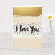 This card shows a wide gold band across the top, with a textured look that catches the light. Under it, the background is made of horizontal stripes in soft beige and white, with slightly uneven edges that feel relaxed and human. In the center, the words “I love You” are written in deep black, using a flowing, calligraphy-style lettering. The text sits on a bright white stripe, so it stands out right away. Around the words, scattered black dots of different sizes look like little bits of confetti sprinkled across the middle area. The mix of gold, beige, white, and black feels calm but still special, like a quiet moment that also says “this matters.” It’s a sweet way to show love or close friendship—simple, direct, and easy to mean ❤️🥰. Hope it helps you share your Valentine’s Day sentiments.