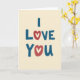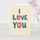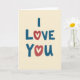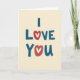 This greeting card features the message “I LOVE YOU” centered on a creamy off-white background. The letters are a deep teal-blue and look like they were painted with a brush, with visible streaks and slightly uneven edges. Instead of the “O” in “LOVE,” there is a red heart, and another red heart replaces the “O” in “YOU.” Both hearts have the same painted look, with light and dark areas that make them feel warm and full. The words are in all capital letters and sit in the middle of the card, with lots of open space around them. The simple color mix of teal-blue and red keeps the focus on the message and gives it a calm, loving feel 💘❤️. It’s a sweet way to share Valentine’s Day feelings with someone you care about 😘.