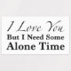 I Love You But I Need Some Alone Time. A clear cut message to get the point across cause no matter how much we care for someone, there are times when for the sake of our mental health and good humor we need to be alone.