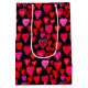 For beloved ones, red hearts in brown backround, handdrawn hearty scandinavian design, in 1970 style.