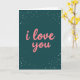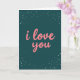 This card features the words “i love you” centered on a deep teal background, like a calm winter night. The lettering is in a flowing, connected style, colored a soft coral-pink that feels warm against the cool backdrop. Small white snowflakes and tiny white dots are scattered mostly along the top and bottom edges, like a light snowfall framing the message. The snowflakes look simple and crisp, adding a quiet winter touch without taking attention away from the words. Because the design is so focused, your eyes go straight to the message, which makes it feel honest and direct. It’s a meaningful card to give when you want to say something real, whether it’s for a partner or someone you care about deeply 🥰. The contrast of teal, coral-pink, and white makes the message stand out in a gentle way that feels calm and affectionate ❤️.