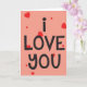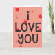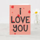 You can customize this card that we designed with red hearts and circles and text reads I Love You.