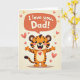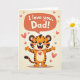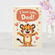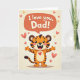 This card shows a cute cartoon tiger cub in orange with black stripes, standing near the bottom with its arms open wide like it wants a hug. Its face has a big grin with tiny fangs showing, rosy cheeks, and bright, happy eyes that make it feel full of love. On the tiger’s chest there’s a red heart, which makes the message feel simple and direct ❤️. The background is a light cream color with small floating hearts scattered around in pink, red, and golden yellow. At the top, a rust-orange speech bubble holds the words “I love you, Dad!” in white, friendly rounded letters. The layout keeps the tiger as the focus while the words sit clearly above, like the tiger is saying them out loud. It feels meaningful to give because it’s straightforward, affectionate, and easy for a dad to understand and keep 🥰. Hope it helps you share Valentine’s Day sentiments with someone you love.