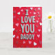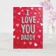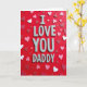 This card shows the message “I LOVE YOU DADDY” arranged in pale gray letters across a deep matte red background. The letters sit in the center and look like simple cutout shapes, with soft shadows that make them stand out. All around the words, small heart cutouts are scattered in different sizes. The hearts are in reds, soft pinks, and white, and they look gently placed rather than perfectly lined up. The lighting is bright and even, so the red background feels warm and the shapes look easy to see. It feels meaningful because it keeps the message direct and tender, like a straightforward “I love you” that’s hard to forget ❤️. It’s a sweet way to show care and closeness, whether you’re giving it from a child, a partner, or the whole family 🥰. Hope it helps you share Valentine’s Day sentiments with someone you love.