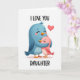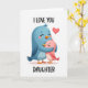 This greeting card shows two cartoon-style birds hugging close on a white background. The bigger bird is bright blue and wraps its wings around a smaller pink bird, who has rosy cheeks and a shy, happy look. Both birds have their eyes closed, which makes the hug feel calm and safe. Their beaks and feet are orange, adding a little pop of color against the soft blue and pink. A small red heart floats above them, making the affection clear without needing much else 🥰. The words “I LOVE YOU” appear near the top in thick, simple capital letters, and “DAUGHTER” is placed at the bottom in the same style. It feels meaningful to give because it captures that close, caring bond in a way that’s easy to understand and hard not to feel ❤️.