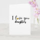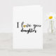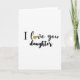 This greeting card keeps things simple with a white background and a centered message in black. The text reads “I love you daughter,” with the “I” in a large serif letter that stands out at the start. The words “love you daughter” are written in a smooth, flowing cursive style across the middle. In the word “love,” the “o” is replaced by a small gold glitter heart that catches your eye right away ❤️. There aren’t any other objects or scenes, so the focus stays on the message and the warm little heart. It feels meaningful because it says exactly what you want to say to your daughter, without extra fuss, and the gold heart adds a gentle touch of care 🥰. Share it to help pass along your Valentine’s Day feelings in a simple, loving way.