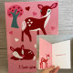 Send out some sweet Valentine's Day greetings with this customizable card. The pretty red, white and pink graphics depict cute deer with white heart-shaped spots. The message on the front and on the inside of this card can be customized with your own greeting.