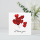 Beautiful I love you card with floating red heart balloons design.
