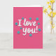 This greeting card features a rich fuchsia-pink background that sets a romantic, happy tone ❤️. In the center, the words “I love you!” appear in white, flowing letter shapes that look like a sweet handwritten note. The message sits prominently in the middle of the card, making it the first thing you notice. Around the text are small teal-blue flowers with four rounded petals, each with a tiny black dot in the center. A soft shadow under the letters and flowers adds a little depth, so the design feels slightly raised instead of flat. The simple mix of pink, white, and teal keeps the focus on love while still feeling friendly and light 🥰. It’s a meaningful card to give because the message is direct, warm, and easy to believe, whether for a partner or someone you care about. Hope it helps you share Valentine’s Day sentiments in a kind, heartfelt way.