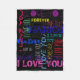 Repeating ""I love You"" & ""forever " with amazing and various lettering. Design on fleece blanket with dark background. You can easily change text (font, color, size and position) and background color by clicking the customize button.