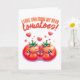 Squeeze the day and express your love with our I Love You from My Head Tomatoes Card, a ripe mix of affection, warmth, and a splash of juicy humor. This card is vine-ripened with emotion, featuring two cute kawaii-style tomatoes hugging each other so tightly that you can almost see the love being squished out, accompanied by a sprinkling of red hearts to symbolize the depth of your affection. The front of the card playfully states "I love you from my head tomatoes" in a vibrant red text, blending a pun that's both charming and heartfelt. Ideal for Valentine's Day, anniversaries, or just to share a moment of heartfelt laughter, the inside of the card offers a space for your personalized red message, allowing you to seed your feelings in your own rich and flavorful words. Let this whimsical card be your way to say that your love is as ripe, as juicy, and as wonderfully intense as the deepest red tomato, proving that some feelings are just too deliciously deep to be contained!