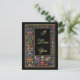 A beautiful gothic illuminated manuscript with flowers and scrolling leaves on a black background. The front reads I Love You, but you can change the text and choose the letting style and add a message to the back.