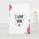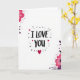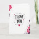This design shows a white background with the big words “I LOVE YOU” in black, drawn in a casual hand-lettered style right in the center. Small red hearts surround the message, with short little lines that look like they’re radiating outward. In the upper left corner, there’s a cluster of flowers and leaves in fuchsia, deep rose, and plum, with a few dots sprinkled around. The lower right corner has a matching floral cluster, which helps frame the words without taking attention away from them. The overall look feels bright and affectionate, like a simple note you really mean ❤️. It’s meaningful because it says what you feel clearly, while the hearts and flowers add a gentle, caring touch 🥰.