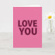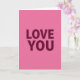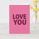 This card instantly draws attention with its deep, rich pink color that feels warm and cheerful. In the center, the bold dark red “LOVE YOU” stands out beautifully, creating a strong and eye-catching contrast. The design is simple but powerful, focusing entirely on sharing a heartfelt message. The clean, straight uppercase letters make the words feel confident and meaningful. Altogether, the simple style turns the card into a modern little piece of art that expresses deep affection with ease. It’s a timeless and stylish way to share your love perfect for Valentine’s Day ❤️💌🍫.