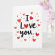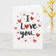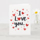 This greeting card centers on the message “I Love You” in thick, hand-drawn black letters on a plain white background. The “o” in “Love” is replaced with a solid red heart, making the words feel even more loving ❤️. Around the main message, many small hearts are scattered like confetti across the card. Some hearts are filled in red, while others are white in the middle with a thin red outline, giving a nice mix of simple shapes. The hearts look slightly uneven in a natural way, which makes the design feel more human and sweet 💘. With just black, red, and white, the card stays focused and easy to read, with the message clearly standing out. It’s a warm choice for a partner, close friend, or anyone you want to remind that you care 😘, and it’s a friendly way to share Valentine’s Day feelings.