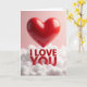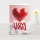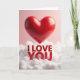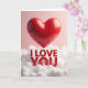 This design shows a shiny red heart floating in the center against a soft pink background that fades gently from light to slightly deeper pink. The heart looks smooth and glossy, with light reflections that make it feel rounded and real. Along the bottom, there’s a layer of puffy white clouds, like a little sky scene. Rising out of the clouds is the text “I LOVE YOU” in red, set in simple uppercase letters and placed near the lower middle of the card. The matching red of the words and the heart ties everything together and keeps the message easy to notice ❤️. It feels meaningful because the image is straightforward and tender, like saying what you feel without overthinking it 🥰. It’s a sweet way to share Valentine’s Day sentiments with someone you care about.