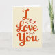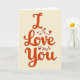 This greeting card centers on the words “I Love You” in large, flowing red-orange lettering that sits right in the middle. The letters have a slight raised look, with a soft shadow that makes them stand out from the creamy, light tan background. Around the message, small hearts sit along thin branches that curl like vines, helping frame the text without taking over. The hearts match the warm tone of the main words and add a sweet, romantic touch 💘. The overall layout is simple and open, so your eyes go straight to the message and its gentle curves. Everything feels calm and affectionate, like a quiet note you’d give to someone close ❤️. It’s a lovely choice for a partner or a dear friend when you want to say something direct and kind 😘. Share it to pass along your Valentine’s Day feelings in a warm, heartfelt way.