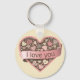 This lovely pink and brown heart has a pink outline and a pattern of smaller heart with stripes and polkadots. A ribbon is draped around the heart and show the text 'I love you'
