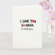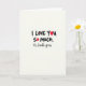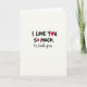 This greeting card keeps things simple with an off-white background and hand-drawn lettering front and center. The main text reads “I LOVE YOU SO MUCH.” in thick, black block letters across the middle. A red heart replaces the “O” in “YOU,” and the “O” letters in “LOVE” and “SO” are also filled in red, adding sweet pops of color ❤️. Underneath, it adds “it’s kinda gross,” written in a thinner, casual script that feels like a funny little aside. There aren’t any characters or scenery—just the message and the contrast between sincere and teasing. The layout guides your eyes from the big statement down to the smaller line, like a loving joke you’d share with someone close 💌. It’s a great pick for a partner or friend who likes romance with a bit of humor 🍫.