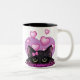 A very unique vector drawing of a loveable little black kitten wearing a sweet pink bow, beautiful big eyes, with front paws up on a cloth and particle face hidden, big purple heart behind kitty with varying sizes of pink hearts and mini hearts. This love kitten mug design makes a great gift for kids, your girlfriend, boyfriends...everyone! This little I Love You Kitten will look great on any of the multitude of mugs or stein sizes, colors, and styles that you can choose from.