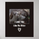 A poster with a cute and romantic photo with 2 otters in love. One otter is licking and kissing the other otter's little face, eyes closed looking blissful. Text says "I love you like no otter" with a cute doodle heart. Set on a dark brown background.